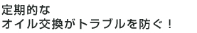 オイル交換を怠りますとトラブルの原因となりますので定期的な交換をおすすめしております。